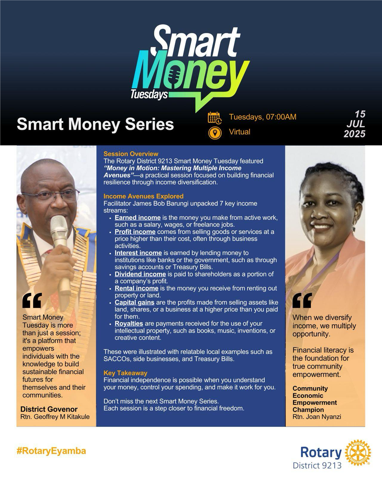 Smart Money Series![]() Did you miss the latest Smart Money Series session? These sessions offer practical tools to grow your income, build financial resilience, and take control of your future. Join us for the next instalment. Your journey to financial freedom continues. #RotaryEyamba